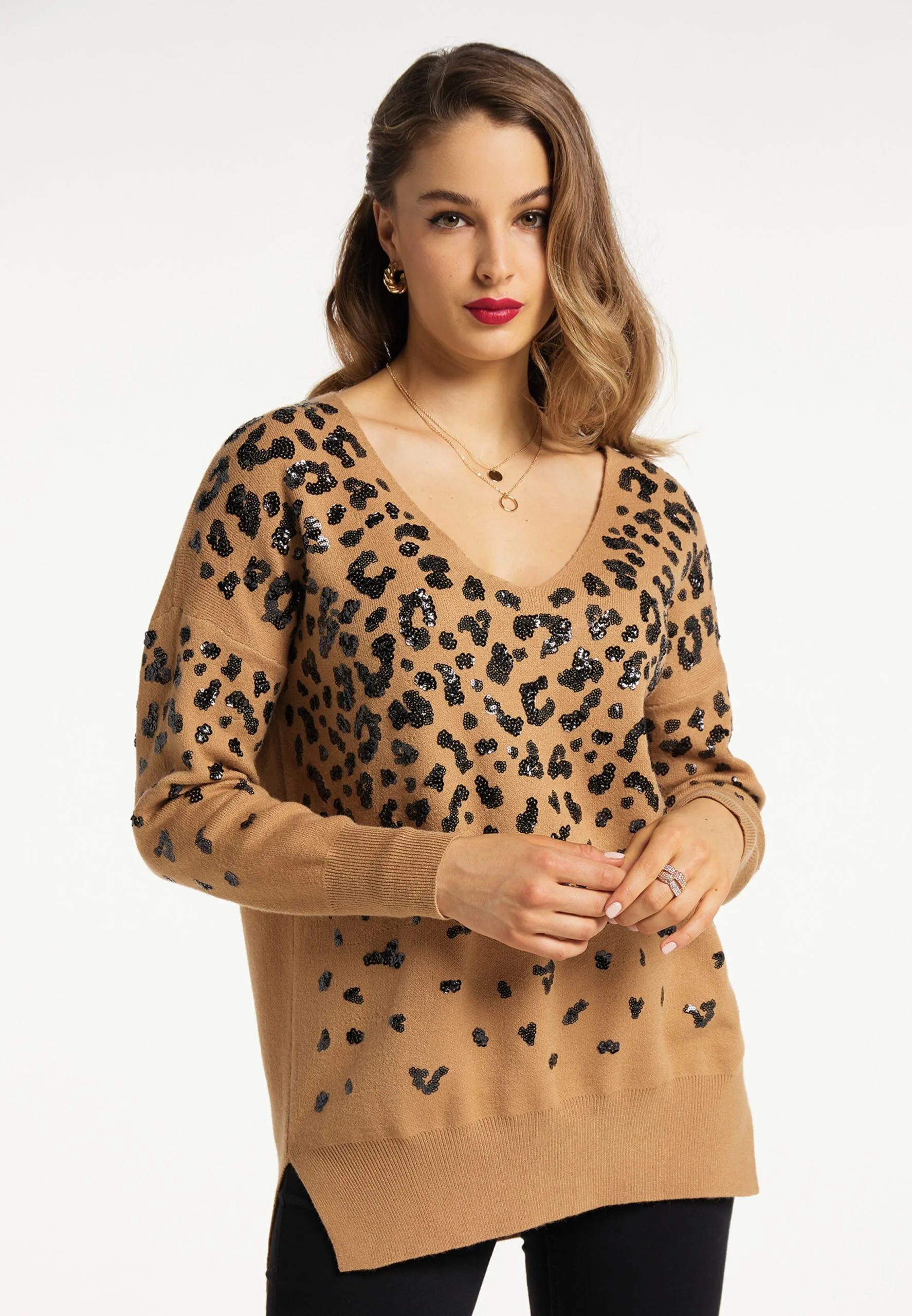 Faina Fijngebreide Truien Regular Trui Dames Camel
