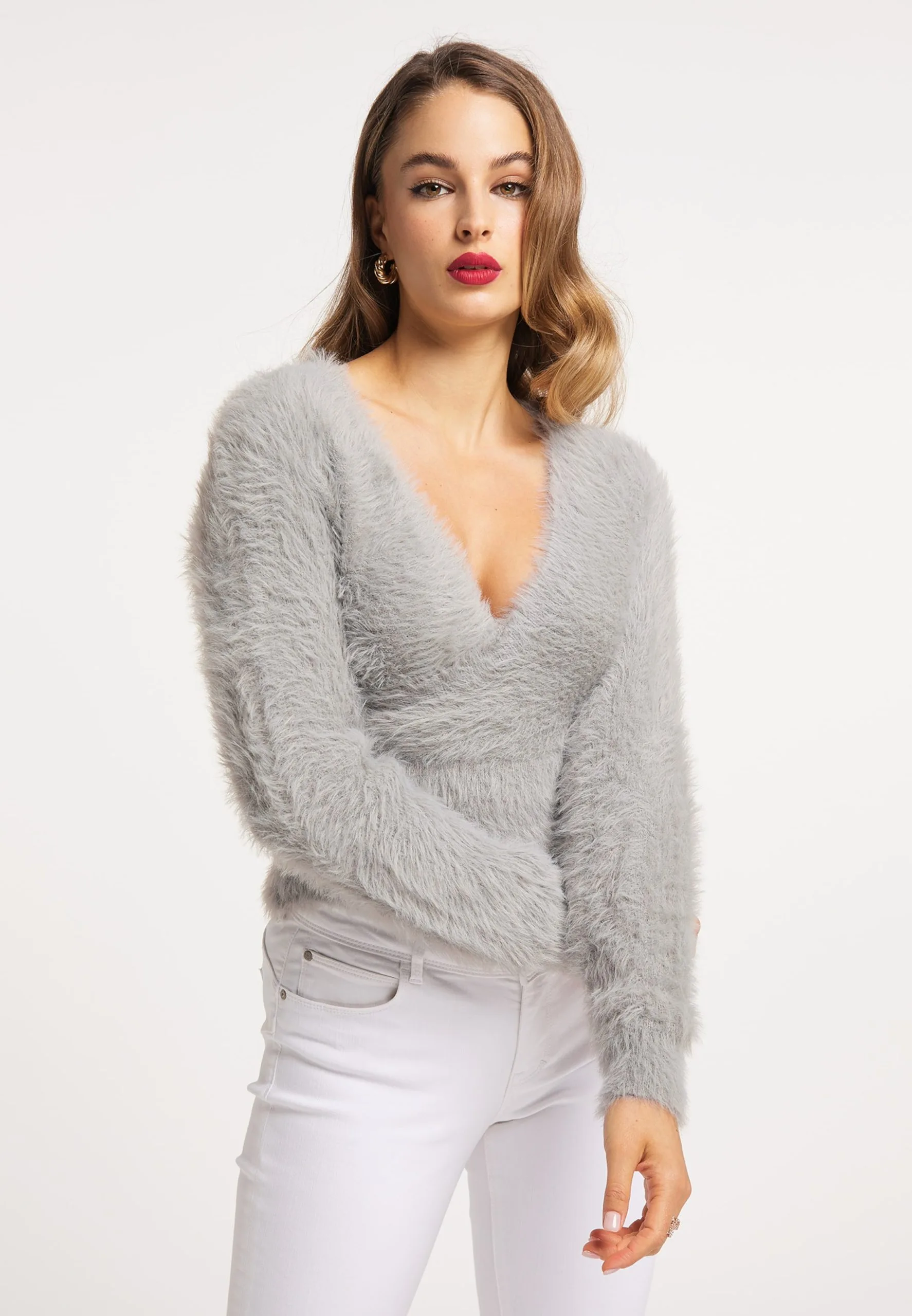 Faina Fijngebreide Truien Trui Dames Stone Grey