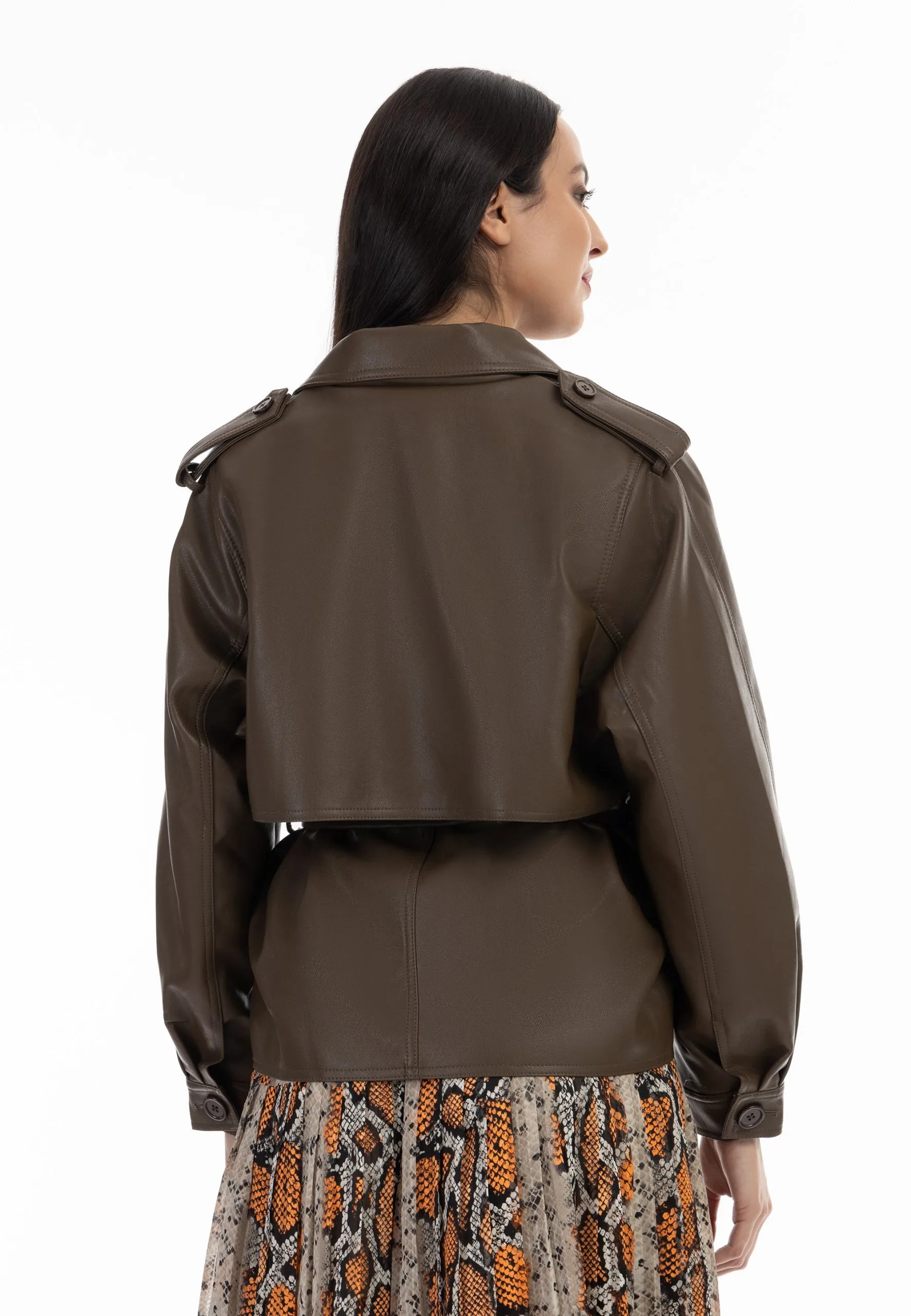 Faina Imitatieleren Jas – Schokolade
