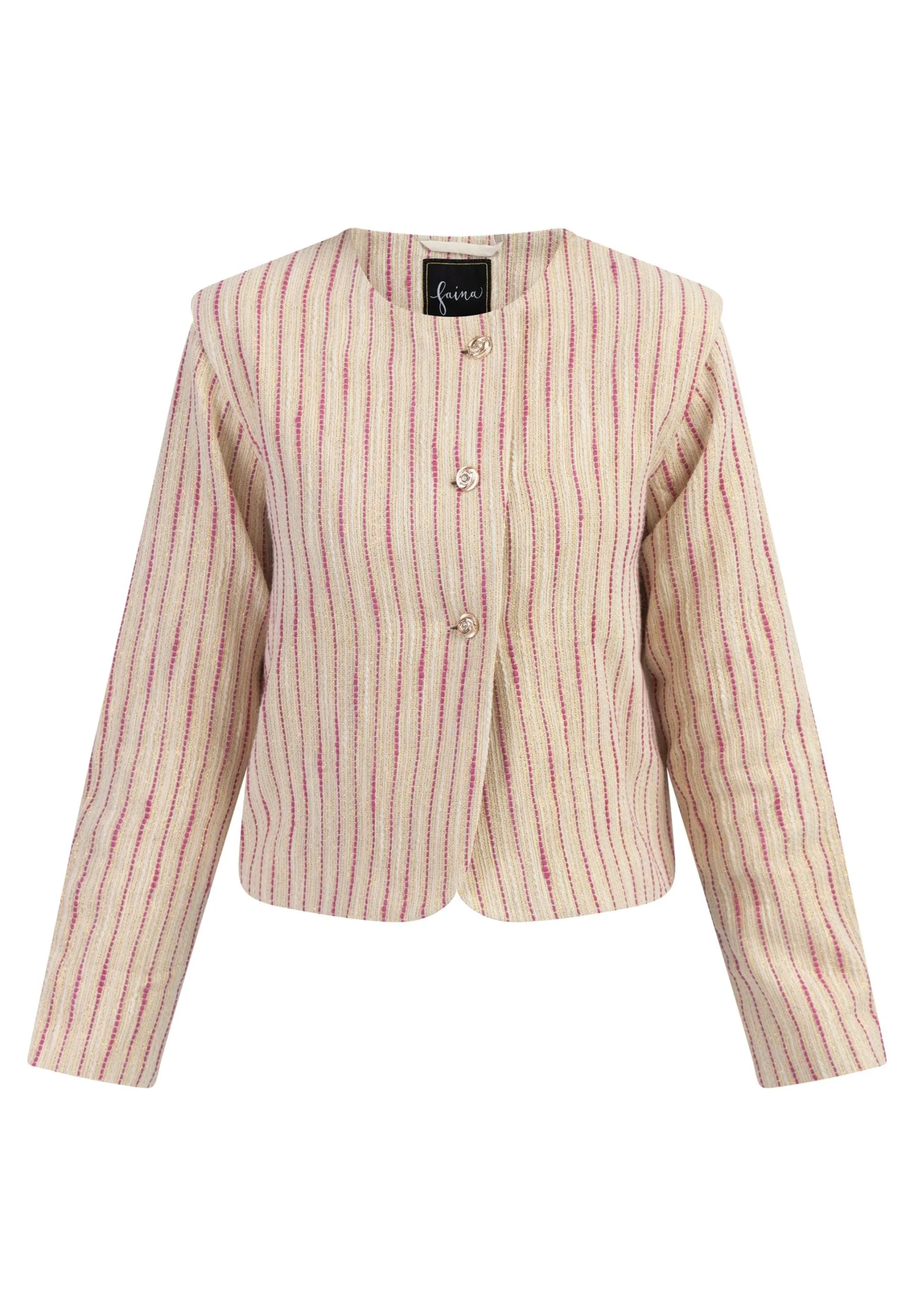 Faina Kurze – Blazer – Pink Wollweisser Streifen